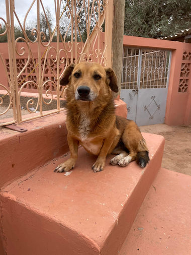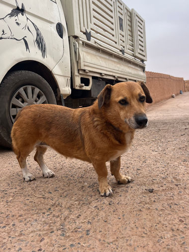 Nina has been with us since May 2021. With a sturdy body on short legs, she's one of our small dogs, probably a Dachshund-mix.